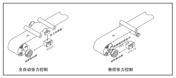 KTC83全自動(dòng)與卷徑張力控制器8可以設(shè)置為全自動(dòng)張力控制器或卷徑張力控制器,當(dāng)功能選擇[28] m設(shè)置允自動(dòng)張力控制時(shí),KTC838為全自動(dòng)張力控制器,需安裝張力傳感器組成閉壞控制系統(tǒng)。當(dāng)功能選擇[28]設(shè)置為卷徑張力控制時(shí),KTC838為卷徑張力控制器,只需安裝接近開(kāi)關(guān)/編碼器對(duì)料卷半徑進(jìn)行測(cè)S,控制器根據(jù)卷徑進(jìn)行張力控制。